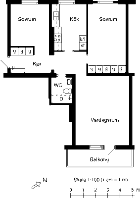3 rum lägenhet på 95 m²