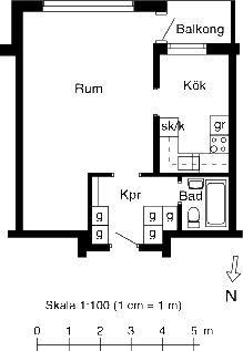 1 rum lägenhet på 42 m²