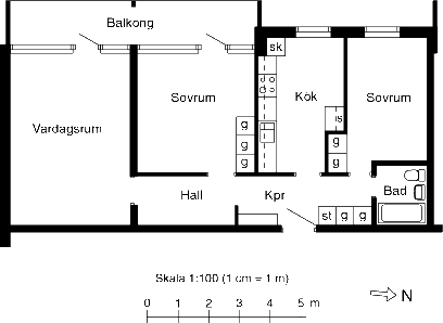 3 rum lägenhet på 85 m²