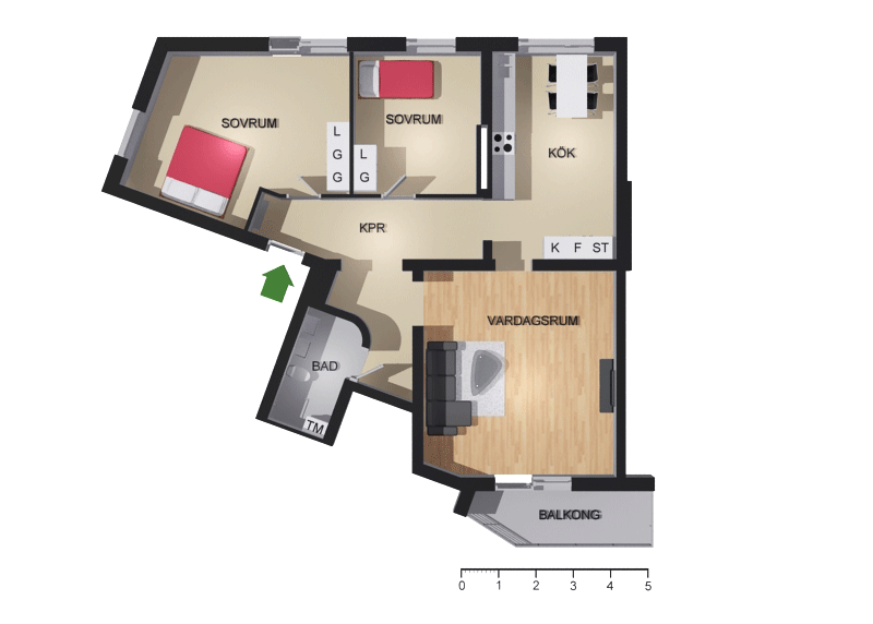 3 rum lägenhet på 77 m²