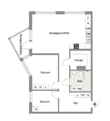 3 rum lägenhet på 59 m²