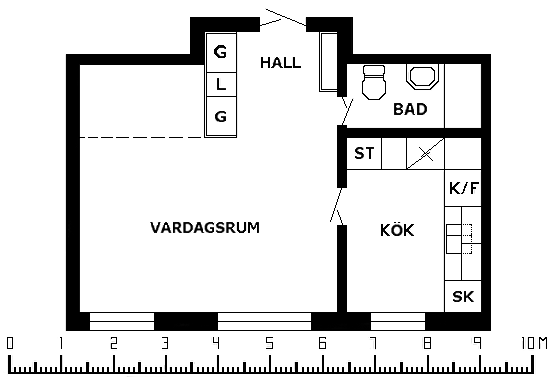 1 rum lägenhet på 39 m²