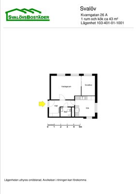 1 rum lägenhet på 43 m²