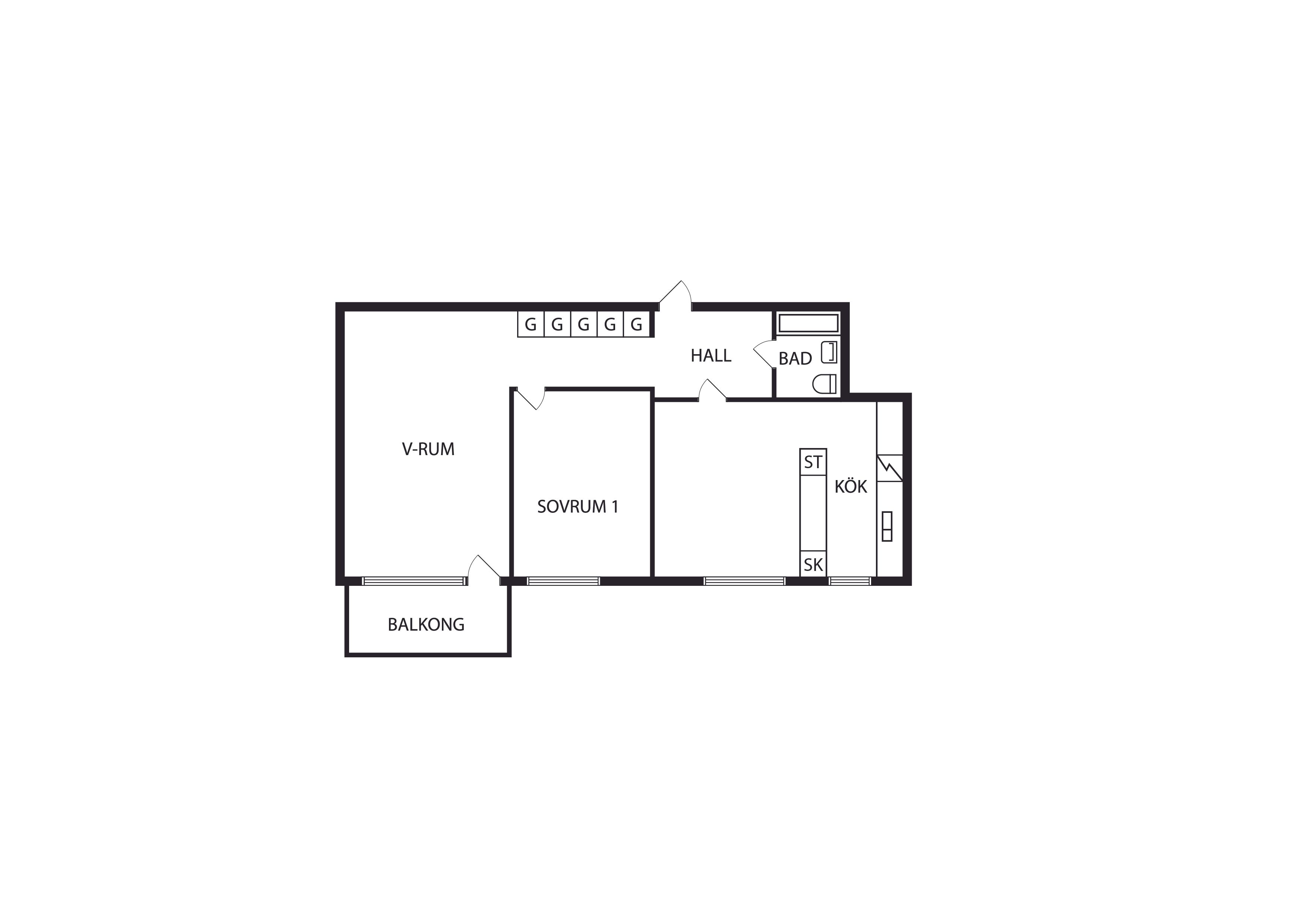 2 rum lägenhet på 48 m²