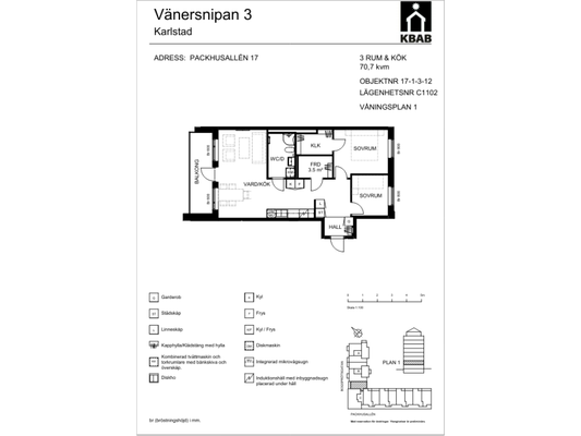 3 rum lägenhet på 70 m²