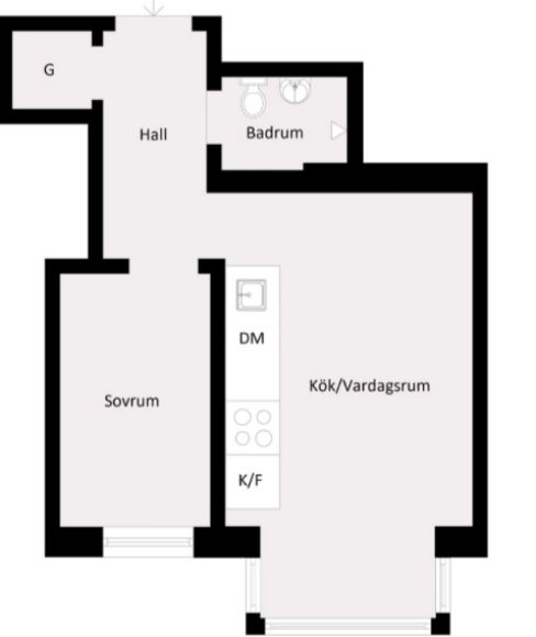 2 rum lägenhet på 35 m²