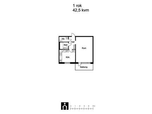 1 rum hus på 42 m²