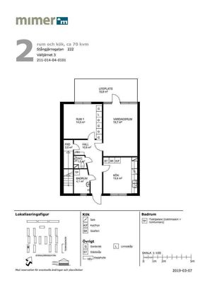 2 rum lägenhet på 68 m²