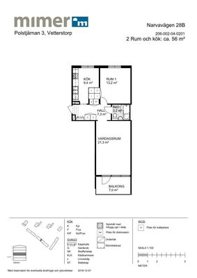 2 rum lägenhet på 56 m²