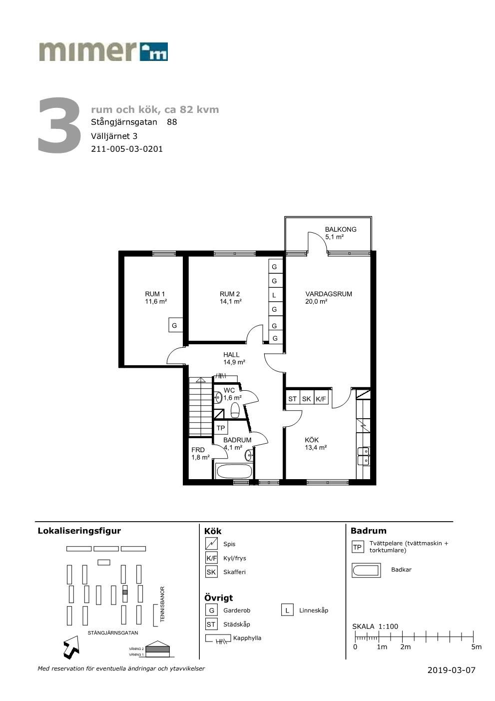3 rum lägenhet på 82 m²